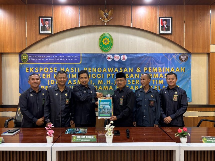 APARATUR PENGADILAN AGAMA BARABAI IKUTI EKSPOS HASIL MONITORING LAYANAN DARI HAKIM TINGGI PEMBINA DAN PENGAWAS DAERAH BESERTA TIM