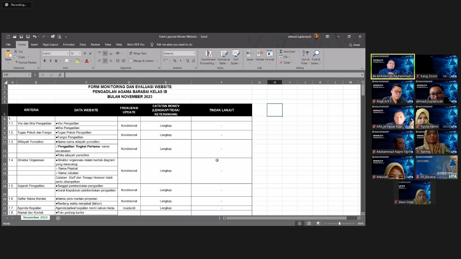 EVALUASI KINERJA PENGELOLAAN TI DAN MANAJEMEN MEDIA, TIM TI PENGADILAN AGAMA BARABAI ADAKAN PERTEMUAN DARING