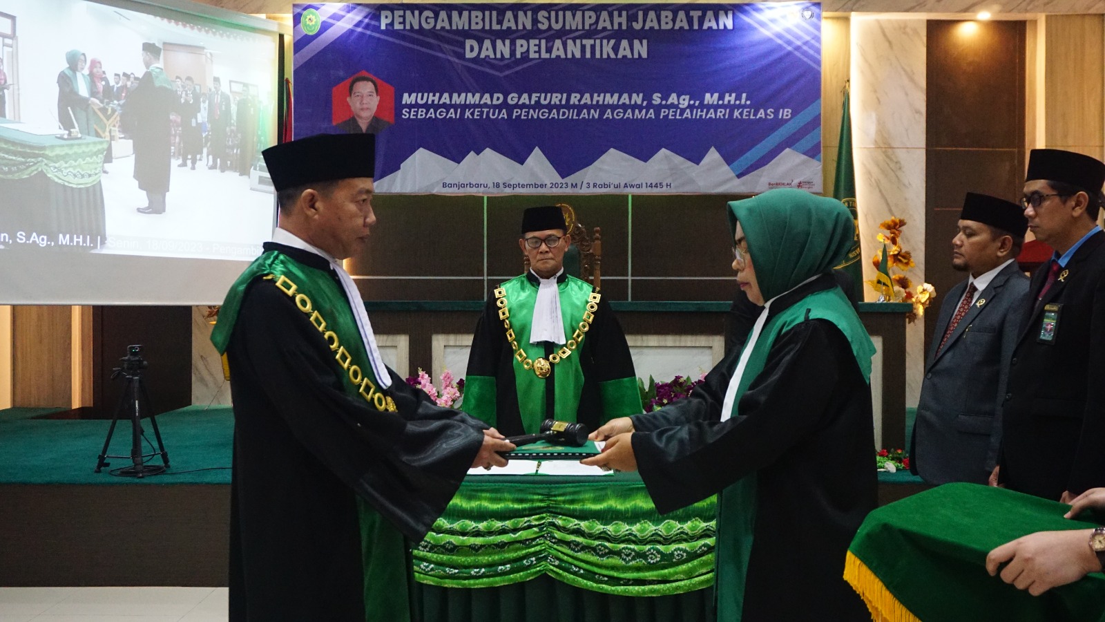 HADIR SEBAGAI SAKSI, KETUA PENGADILAN AGAMA BARABAI IKUTI PELANTIKAN KETUA PENGADILAN AGAMA PELAIHARI YANG BARU