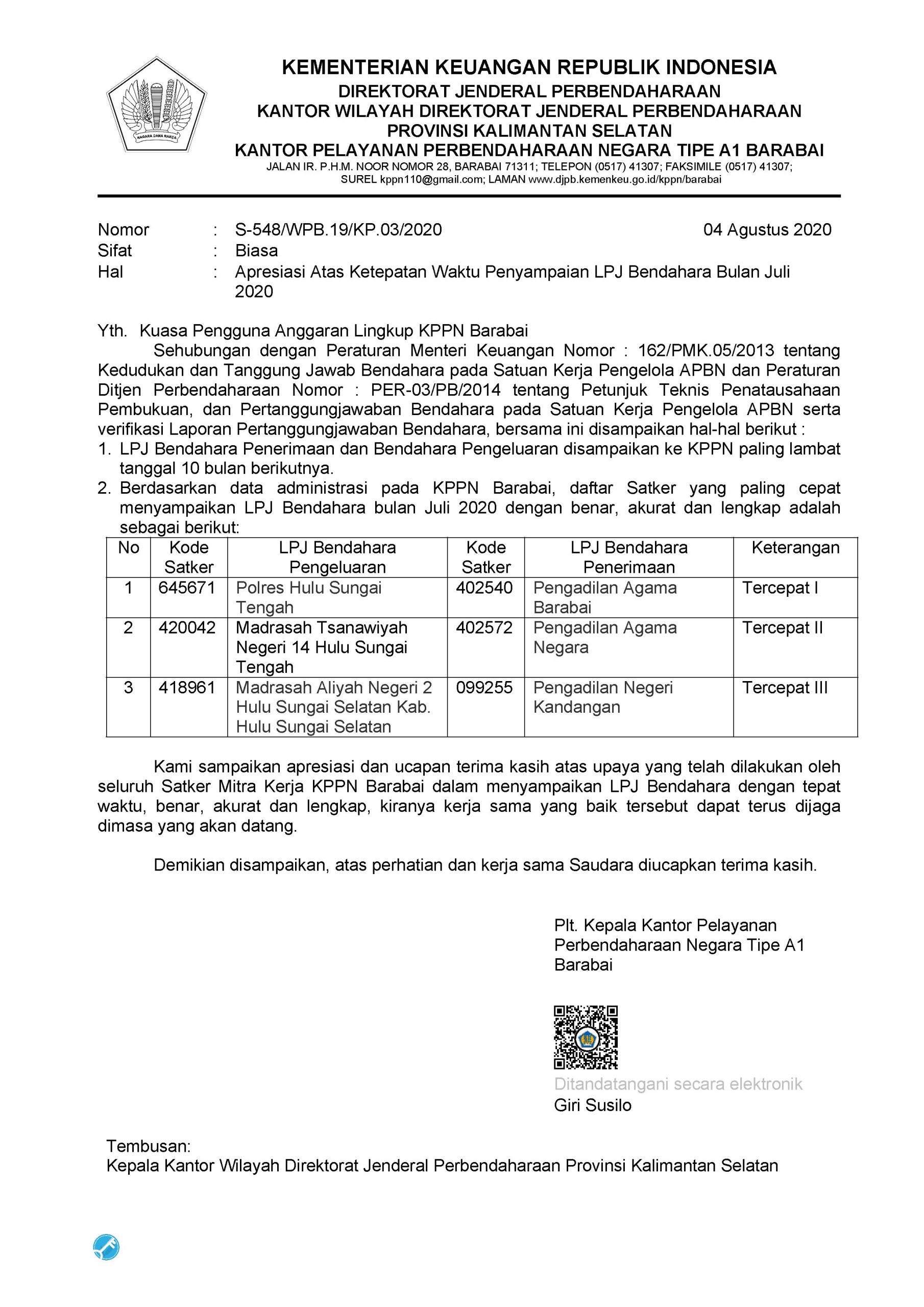 KPPN BARABAI KEMBALI APRESIASI PA BARABAI
