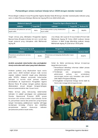 Perbandingan realisasi kinerja Pengadilan Agama Barabai Kelas IB dengan standar nasional pada indikator yang