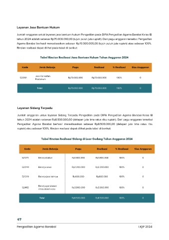 tahun 2024 adalah sebesar Rp70.000.000,00 (tujuh puluh juta rupiah). Dari pagu anggaran tersebut Pengadilan