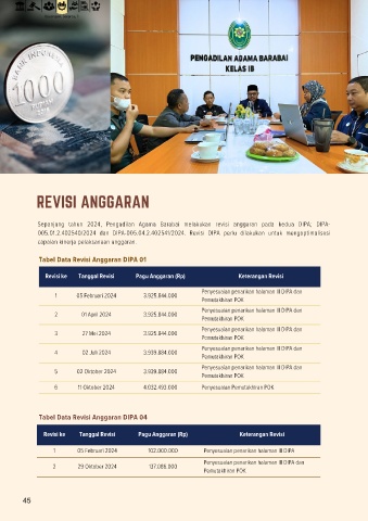 Sepanjang tahun 2024, Pengadilan Agama Barabai melakukan revisi anggaran pada kedua DIPA; DIPA-