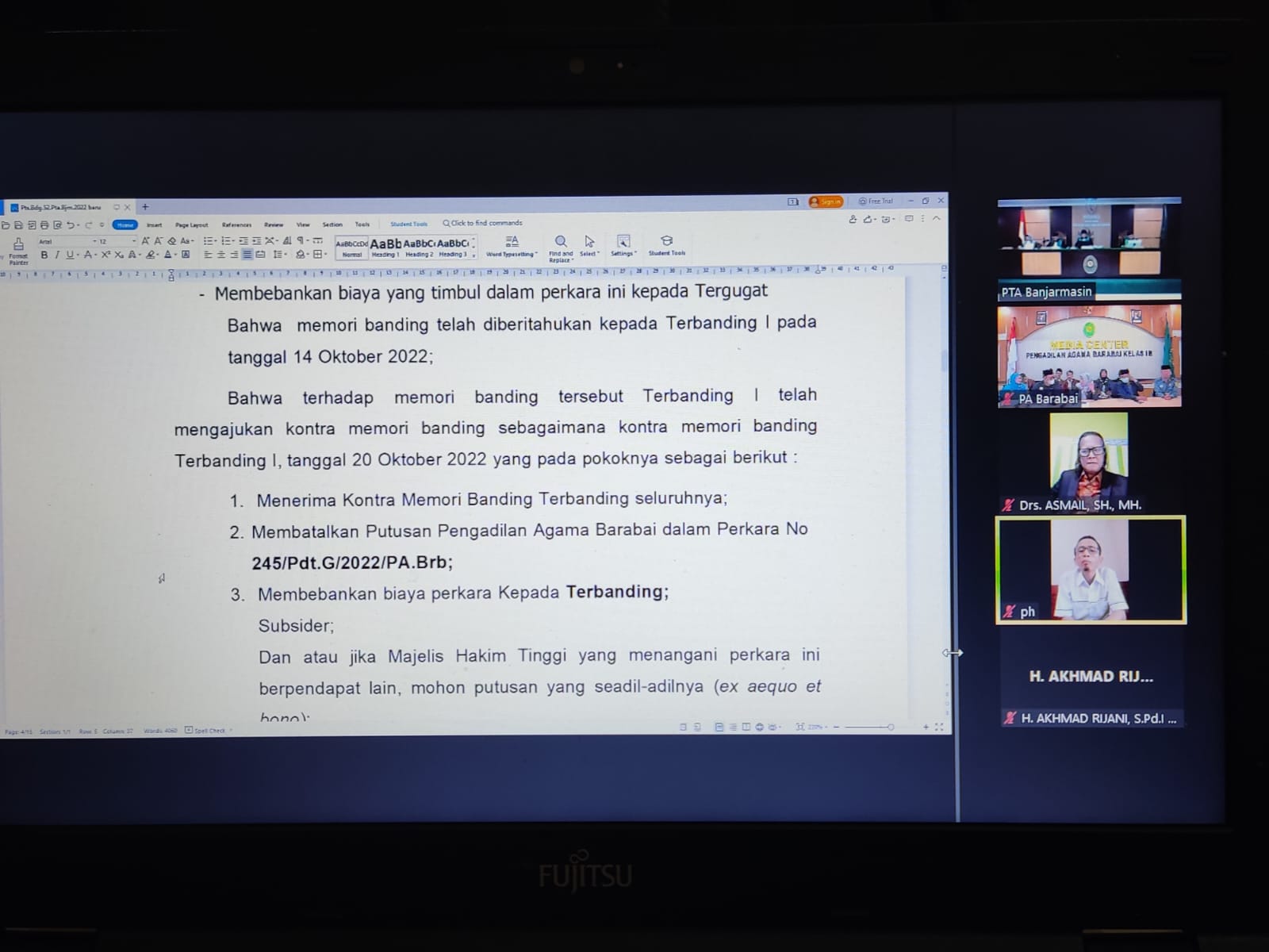PA BARABAI IKUTI SIDANG PEMBACAAN PUTUSAN BANDING VIRTUAL