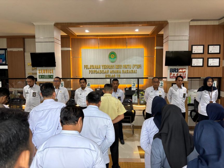 WALAU HUJAN DERAS, PENGADILAN AGAMA BARABAI TETAP GELAR APEL PAGI
